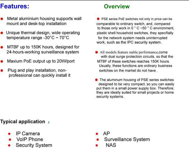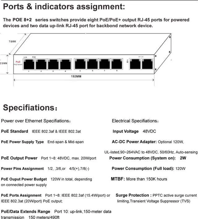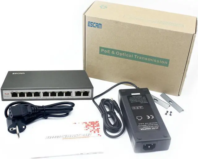 ESCAM 8CH POE Switch 10/100M 150m Distance 120W DC& 2Lan Port IP Camera CCTV System NVR POE Power Supply Adapter POE8CH
