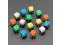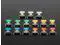 These buttons are bigger than the 6mm ones Adafruit offers and come in a pack of 15. Each button comes with a candy-colored square cap that snaps on. You get three of each color-- blue, grey, yellow, green, and red. The square plastic button tops affix easily to the tactile switch body.