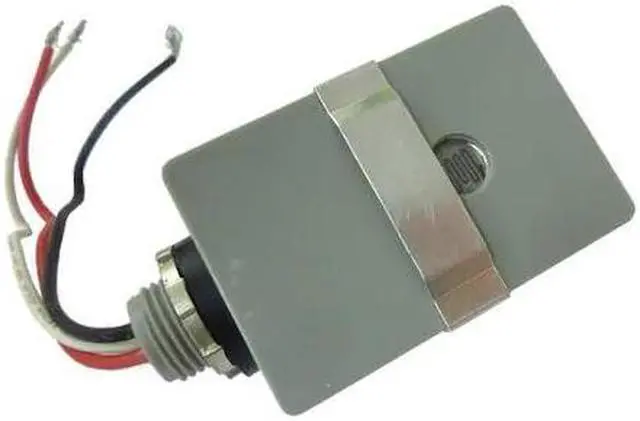 Photocontrol, Mounting 1/2 in Male Pipe Thread, Voltage 120V AC, Max. Wattage 2, 000, Max. Incandescent Amps 16.7 A, Max. Ballast Amps 16.7 A, 10.0 to 20.0 Foot Candles On, 30 to 60 Foot Candles Off, Color Gray, Temp. Range -40 Degrees to 158 Degrees F, Length 3 in, Width 2 in, Depth 1 1/2 in, Enclosure Type Raintight, Contact Form SPST, Housing Material Polycarbonate, Setting Dusk to Dawn, Standards UL Listed, Includes Lock Nut, Washer Gasket