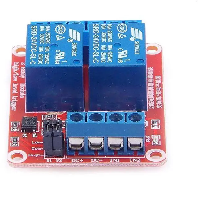 24V 2 Channel Relay Module With OPTO-Isolated Support High and Low Level Triggered