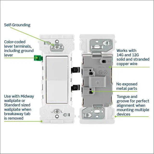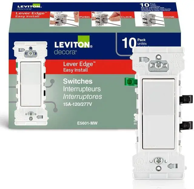 Lever Edge is an innovative wiring device featuring a unique spring action clamp terminal. Install with confidence with simple to understand color coded levers, easy wire push in, and audible “click” confirming a secure connection.