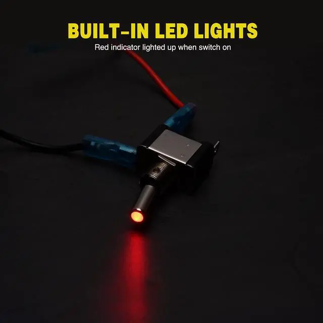 This 12v toggle switch is 3 Pin SPST ON-OFF design,the rating of this automotive toggle switch is 20A 12V. Switch function: when you toggle the switch on, LEDs on and the accessory is on. When you flip the switch cover, LEDs off, accessory is off.