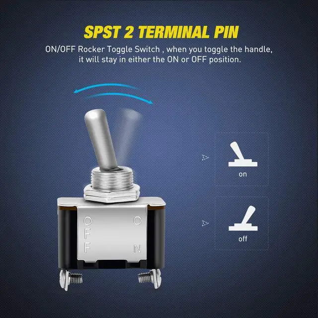 ON/OFF rocker toggle switch,when you toggle the handle,it will stay in either ON or OFF position,easy operation.