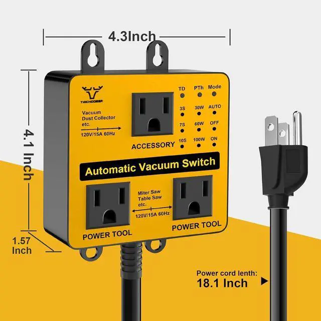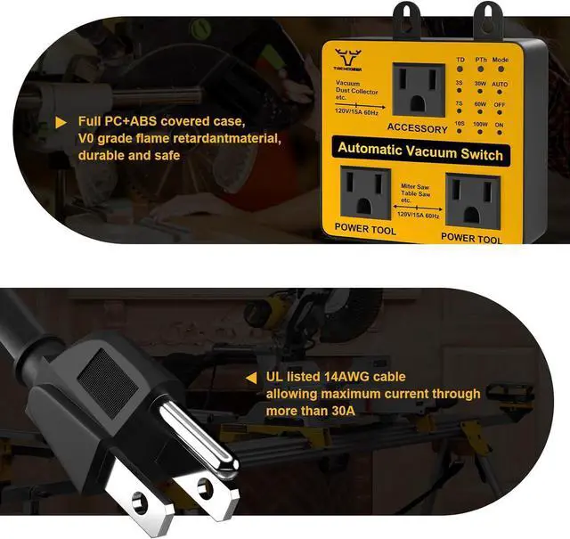 4. Upgraded Design- Offers 3 flexible dust collector modes (Auto/Off/On), with an automated 1-second delay to prevent vacuum circuit overload or tripping; More durable shell and higher-quality internal components; Optimized circuit to handle higher currents while reducing cord clutter.