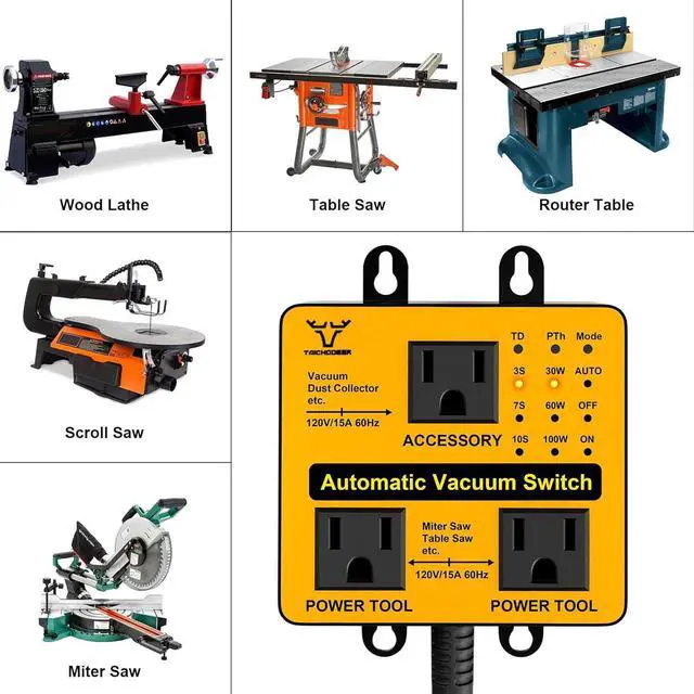 1. Making Your Shop Vac Smarter- This innovative transfer switch automatically turns your shop vac on and off with your power tools; Features 2 tool outlets, compatible with most woodworking tools and accessories, such as table saws, routers, planers, joiners, etc.; Significantly boosts your productivity.