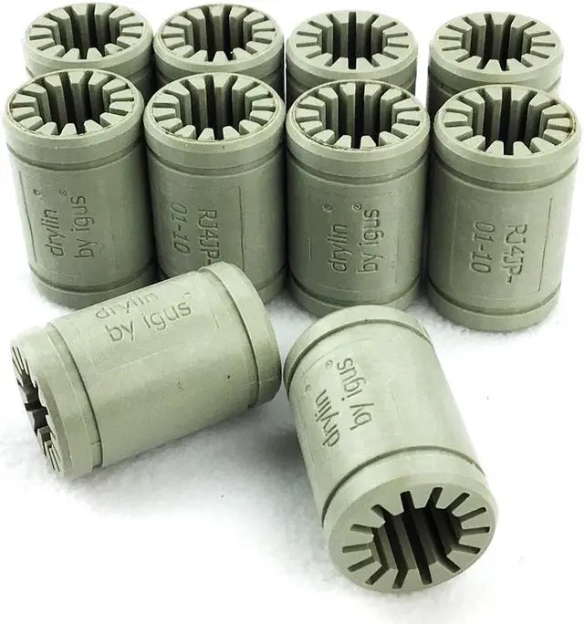 Key Features: Replaces stock LM8UU bearing used in 3D printers 10 mm inner diameter Fits perfectly in 3D printer pillow block 10 pcs per pack and installs easily in x and y axis Self lubricating, not oil or grease needed The lubrication-free drylin (R) linear bearing is based on the principle of "gliding instead of rolling". In combination with corrosion-free materials, tribo-optimised iglidur (R) high performance polymers are used as a sliding surface. drylin (R) linear bearings traverse in dry operation and are thereby maintenance-free and are insensitive to influences such as dirt, water, chemicals, heat or impacts. In addition, they have a very low noise because of the materials used and the special design. With these properties, drylin (R) linear guides can be used in a wide variety of environments, including extreme ones. The modular system allows for high flexibility with different rail guides and pillow blocks. Item Specifics 10 - RJ4JP Linear Bearings