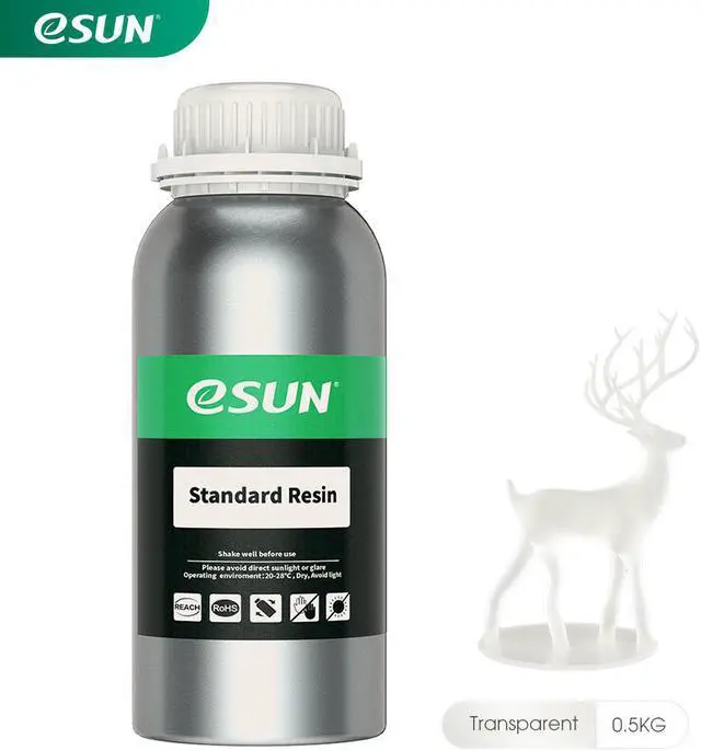 • 1. High Precision & Low Shrinkage: eSUN Standard Resin contains methacrylate monomers as to reduce volume shrinkage during the photocuring process , which ensures the high precision of the print model with smooth finish.