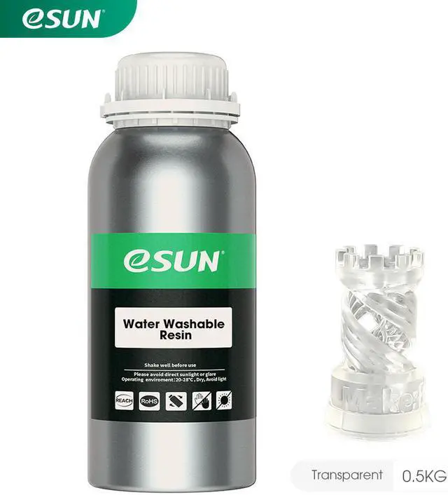 • 2. High Precision & Low Shrinkage: eSUN Water Washable Resin contains acrylate monomers as to reduce volume shrinkage during the photocuring process , which ensures the high precision of the print model with smooth finish.