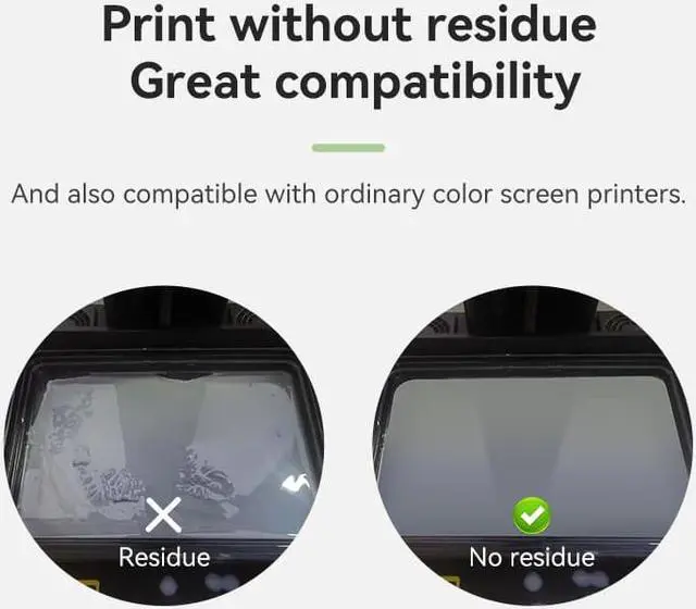 High CompatibilitySpecially designed for Monochrome Screen 3D Printers, high printing precision, no residual impurities and films, also compatible with most of Color Screen 3D Printers. Widely used in animation, dental molds, art, mechanical and functional parts.