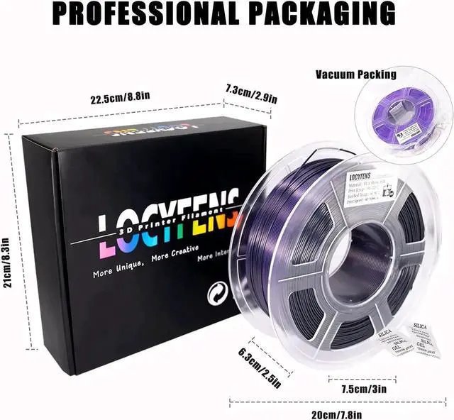 AMAZING SILK PLA GLOSSINESS - LOCYFENS always focuses on researching silk filament, that' s why our silk filament is smoother, brighter and more vibrant than others. Coextruded with black, it shows more amazing glossiness and vibrant colors.