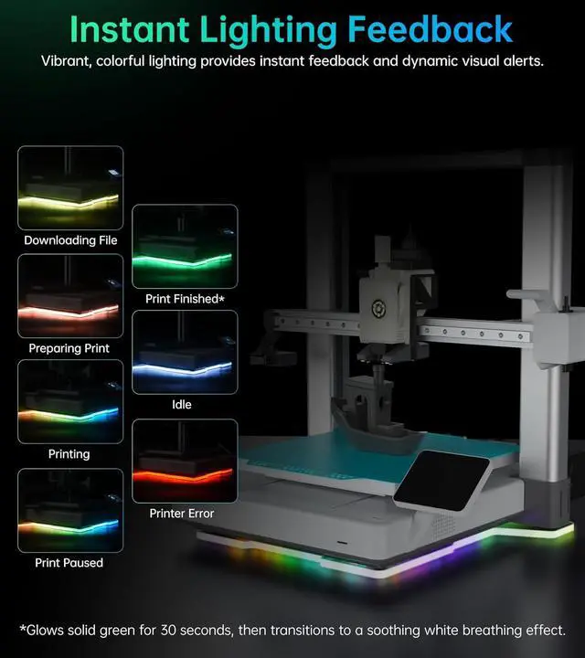 H2D Style Status Color IndicatorBIQU Panda Aura for A1 printer gives you an immerse light show when printing. Its H2D-style vibrant, colorful lighting provides you with the instant feedback and dynamic visual alerts sent from your printer.