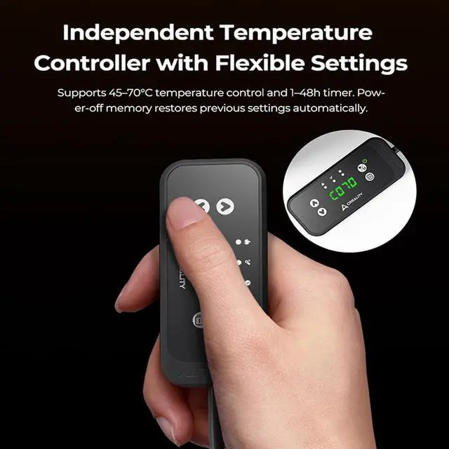 [Independent Temperature Controller with Flexible Settings] Supports 45-70°C temperature control and 1-48h timer. Power-off memory restores previous settings automatically.