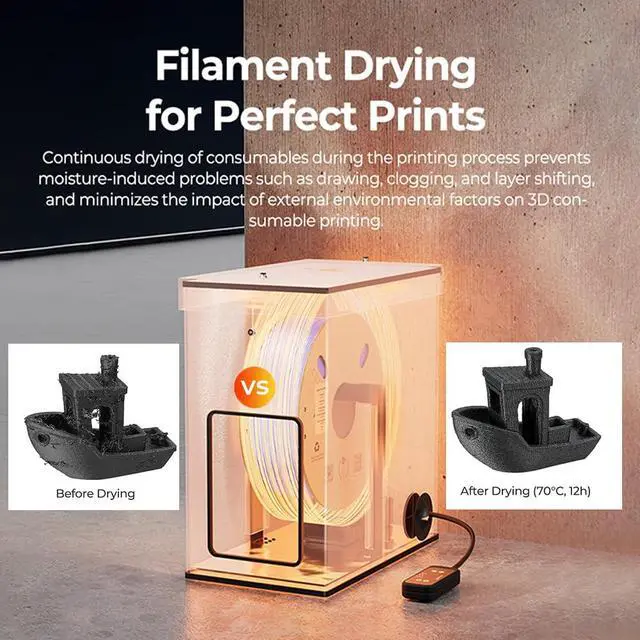 [Filament Drying for Perfect Prints] Continuous drying of filaments during the printing process prevents moisture-induced problems such as drawing, clogging, and layer shifting and minimizes the impact of external environmental factors on 3D filament printing.