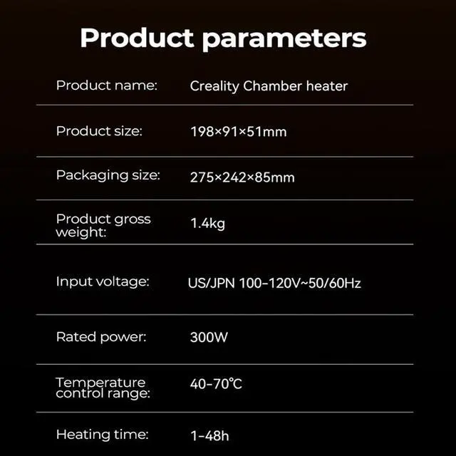 Official Creality Filament Drying Chamber Heater, Up to 70 Chamber Temperature Reduce Print Warping DIY for on Filament Sotrage Box, As Heater Install on 3D Printer or Use on Enclsoure Cover