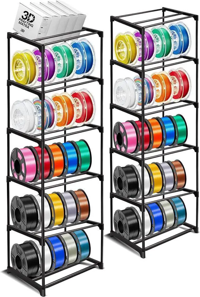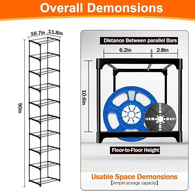 Universal Filament Compatibility Dual Slot Sizes per Tier Securely hold 300g/500g/1kg spools with 16.7"W x 11.8"D shelves, preventing tangles & saving 30% floor space vs plastic racks.