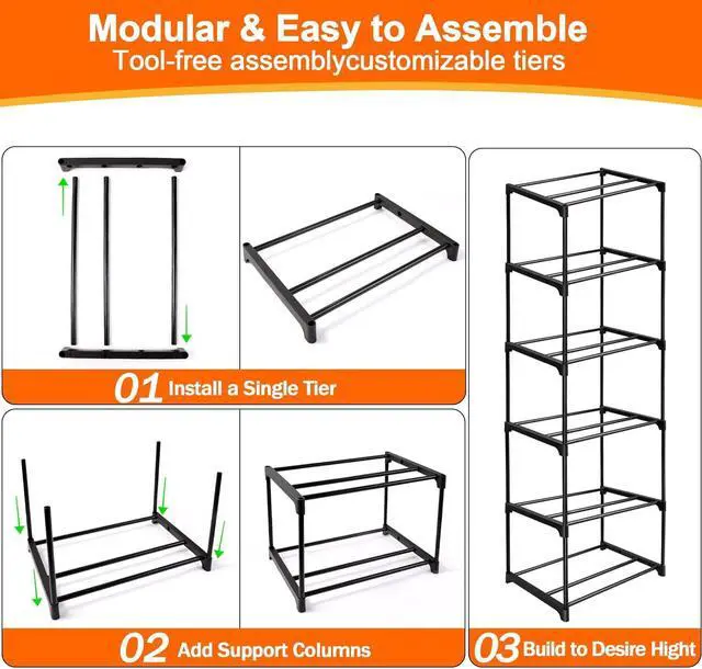 Adjustable Heavy-Duty Structure Modular Metal Rack Stack or remove tiers (up to 10) to fit 8-12ft ceilings, with 30 lbs weight limit per shelf for industrial-grade stability.