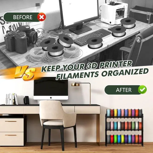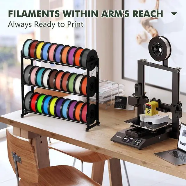Space-Saving Our filament spool holder rack efficiently organizes your 3D filaments, maintaining a clean printing area while ensuring quick access to the spools you need