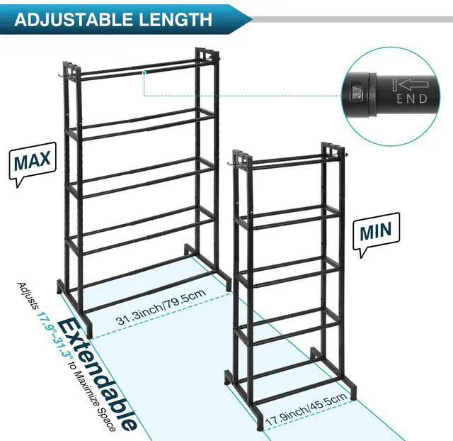 Upgraded 17.9" to 31.2" Adjustable LengthWith its upgraded telescopic tube design, this 3d filament rack easily extends from 17.9" to 31.2" in length without the need for toolssimply pull to expand. This flexible sizing helps you adapt the spool holder rack to various work-space layouts, whether used for small home 3D printing studios or professional 3D printing office, 3d printer supplies warehouse.