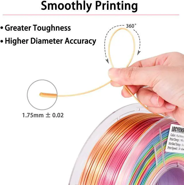 SMOOTHLY PRINTING - With greater toughness, 3d printer filament feeding will be smoother and will not break in the tube. The dimensional accuracy of the Rainbow PLA filament 1.75 mm is +/- 0.02 mm, so that print will be smoother without jamming nozzles.