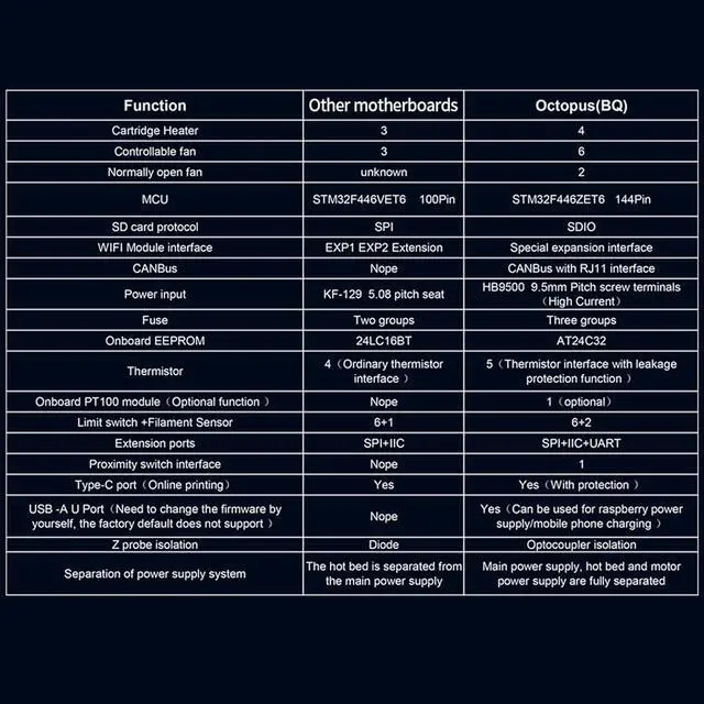 Strong DIY SupportThis motherboard supports up to 8 stepper drivers with 9 stepper driver outputs in total; And up to 6 PWM fans and 2 always-on fans with the ability to individually select the voltage rail that will drive each fan. Select from Vin, 12V or 5V.