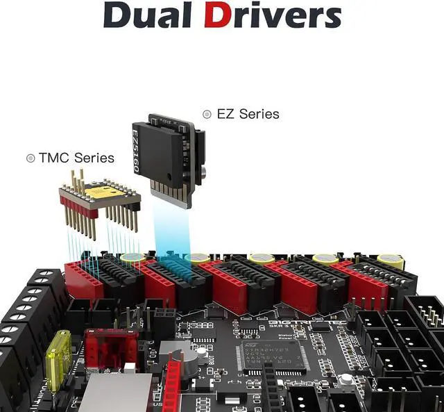 Safe Anti-misplugging DesignWrong installation of drivers will not only cause damage to the drivers itself but even ruin the motherboard or catch fire. And according to our survey, 40% Users may misplug the drivers unintentionally. Our new arrivals SKR 3 EZ motherboard and EZ series drivers, featuring an unprecedented anti-misplugging design, can totally remove such hidden dangers to offer you a better and safer printing experience! (Traditional TMC drivers is still compatible. )