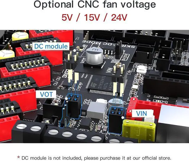 48V High Speed PrintingMotor voltage of SKR 3 EZ varies from 12V to 48V (need to use EZ5160 Pro driver for 48V) while SKR 3 varies from DC 12V to 24V. Higher voltage can extremely improve your printing speed and you can adjust it with a jumper cap. What' s more, SKR 3 owns 2 normal fans, and the EZ version owns 3 normal fans, which can ensure the smooth operation of your printer and advance your printing quality.