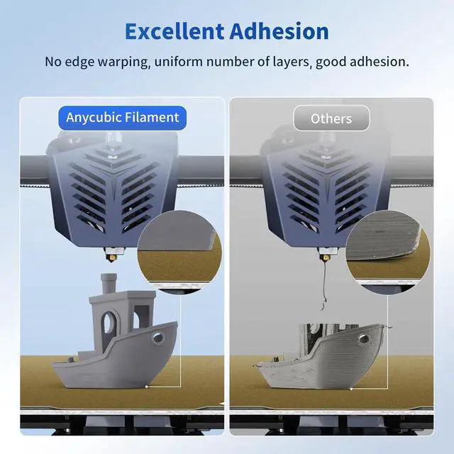 & Anycubic 3D Printer PLA filament of 1.75 mm diameter, Minimum dimensional tolerance ± 0.02 mm, which makes filament outflow smoother, came out homogeneous. The low shrinkage and stable printing dimensions make the fusion between the layers very good to obtain an even better-bridging result. You don' t worry the diameter changes a lot then the feed rate is disrupted with thicker and thinner layers at all