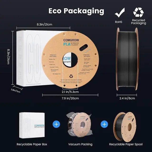 Clog-Free & No Bubble: PLA is vacuum sealed with desiccant to protect the filament from moisture to achieve high-precision printing. No clogging and bubble-free.