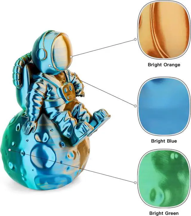 PLA Filament Tri-Colors Coextruded- High quality 3D Printer Filament Silk Shiny PLA with Silk Blue Green Orange 3 colors on filament each cross section, just a small prints can show all colors, has shiny appearance and outstanding silky glossy smooth.