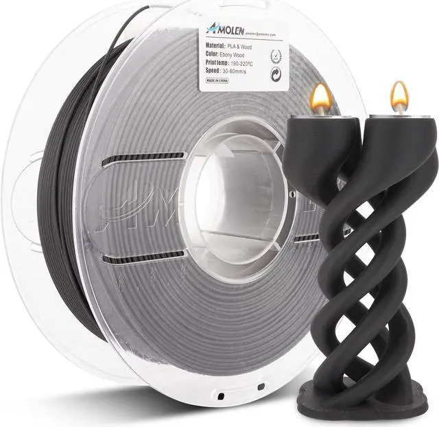 REAL WOOD FIBER - There is 20% wood fiber in the ebony wood PLA Filament. Therefore, you will get a print like a real wood with matte face and even wood smell.
