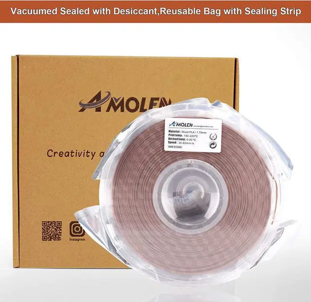HIGH PERFORMANCE: Orderly wrapped, melt well, feed smoothly and constantly without clogging the nozzle or extruder. AMOLEN Wood PLA filament is the choice of engineers, designers, and anyone else into 3D printing who demands the best.