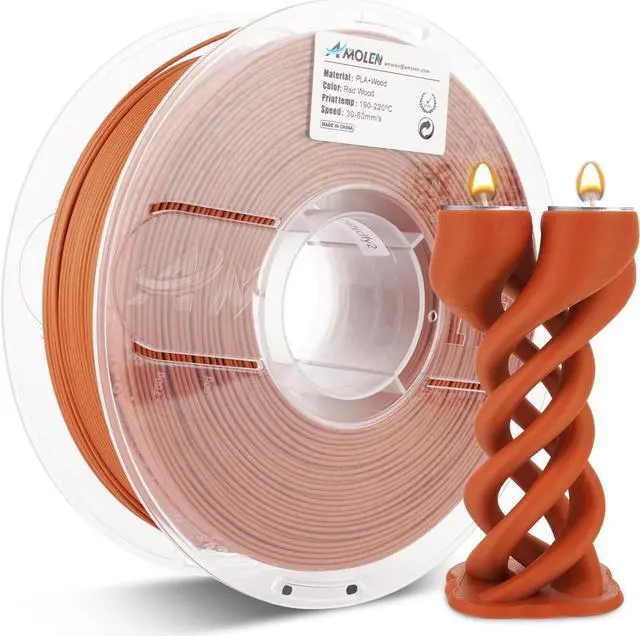 PREMIER MATERIAL: Made from PLA and 20% red wood particles. Prints just like normal PLA with gorgeous surface of red wood color and texture. The print even smells like wood, Great choice for people who love nature and love to close nature.