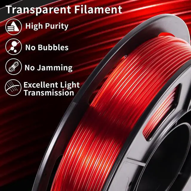 High Quality MaterialsThe clear 3D printer filament bundle uses raw materials imported from Germany, it' s high purity, low shrinkage, high fluidity, rapid cooling, excellent inter-layer adhesion, bed adhesion, good surface finish, etc. It can provide you with a high-quality printing effect.