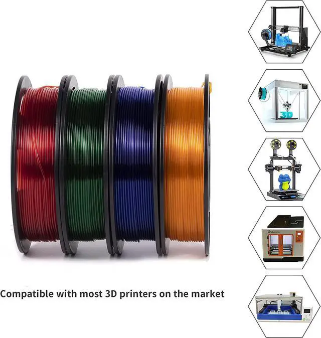 High Clarity & Light TransmissionIEMAI clear PETG filament 1.75 mm bundle contains 4 popular colors: Orange/Blue/Green/Red, which offers excellent transparency, light transmission, and high gloss, meets your different printing needs. The clear filament is perfect for printing decorations, artwork, vases, lamps, lampshades, toys, and more.
