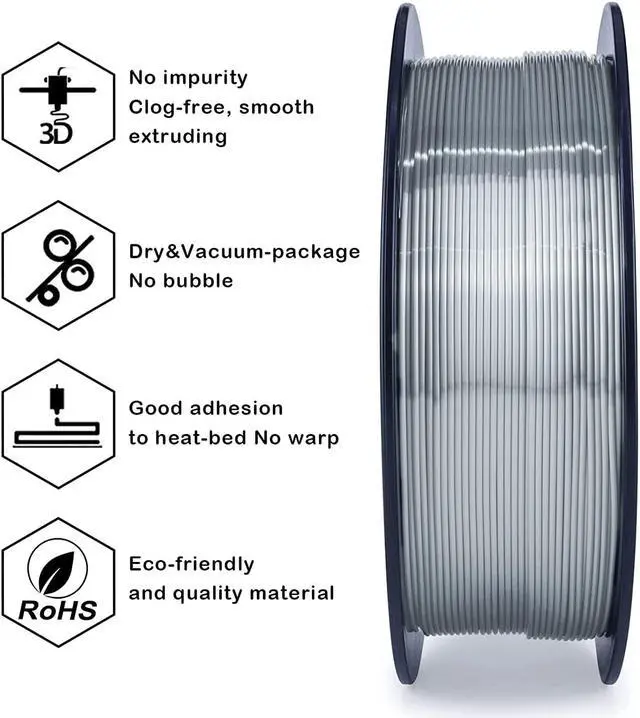[Hight Quality Silky PLA]- The silver PLA filament is made of premium raw material, which