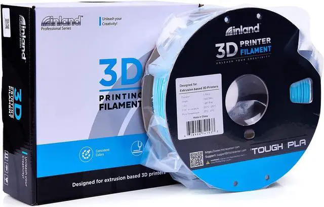 INLAND TOUGH PLA FILAMENT: Designed with the highest quality and compatibility in mind, Inland Tough PLA Filament undergoes numerous testing procedures to ensure that you spend less time troubleshooting and more time printing! Your filament will arrive completely dried and vacuum sealed with desiccant to ensure a high-quality smooth print.