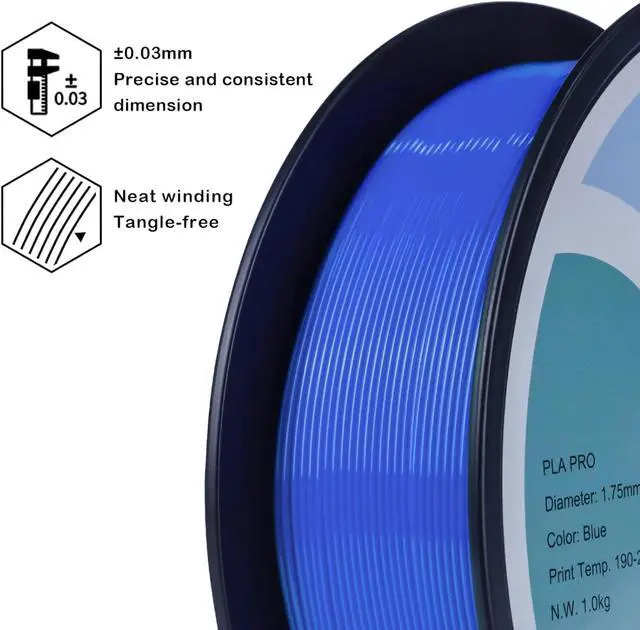 • Smooth Printing - Ziro 3D PLA PRO series filament prints smoothly, with high purity, low shrinkage and excellent layer adhesion for your printing project needs.