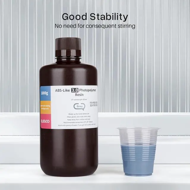 Stable Performance - Achieve Strong Stability with our ABS-like resin 3.0, which eliminates the need for manual stirring and guarantees consistent colour across the model surface. Our resin does not delaminate or separate over time.