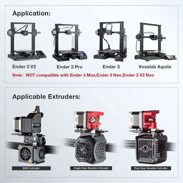 Application: The direct drive upgrade kit is suitable for Ender 3 V2, Ender 3 Pro, Ender 3, Voxelab Aquila 3D printers, NOT compatible with Ender 3 Max, Ender 3 Neo, Ender 3 V2 Neo, NOT compatible with TITAN extruder.