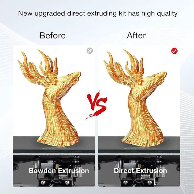 Outstanding Extrusion Control: A direct drive extruder improves extrusion and retraction by removing the need for the Bowden (PTFE) tube. It provides precise retraction and a better print result.