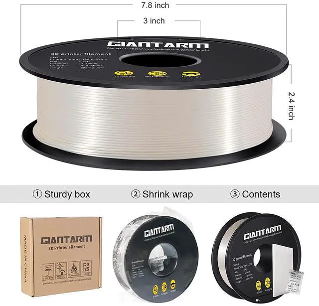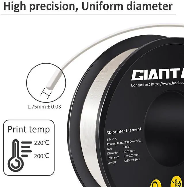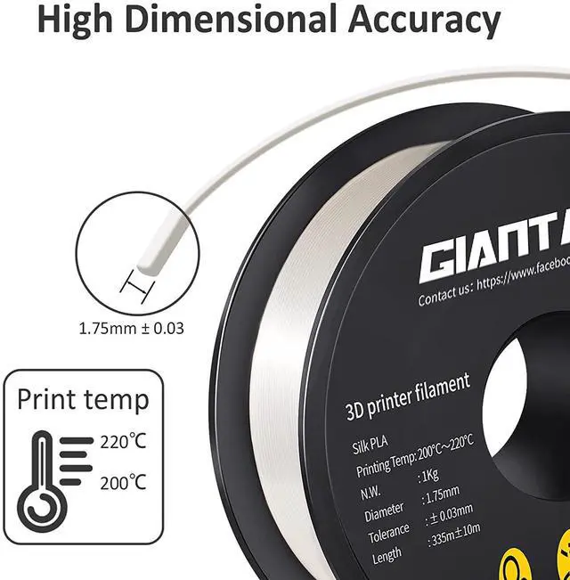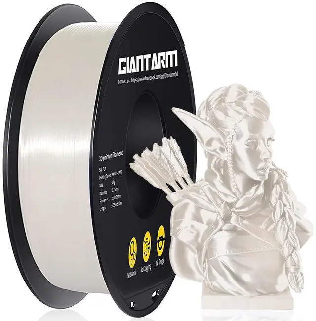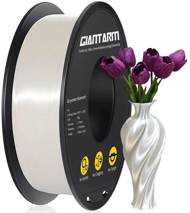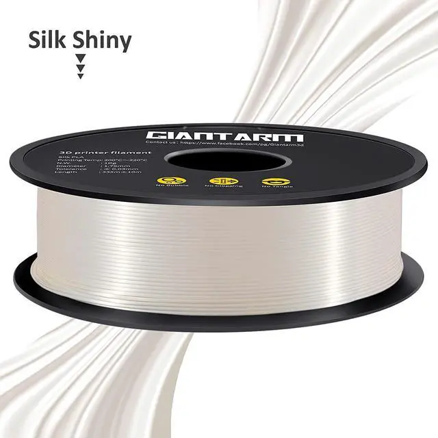 Shiny Silk PLA Smooth and shiny finish like real silk, no extra polishing needed, printing at a high detail results in a beautiful finish. GIANTARM high quality silk PLA filament brings arts & crafts and 3D projects smooth shiny silk-like surface which definitely gives an eye-popping result!