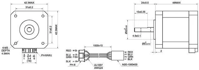 Bipolar stepper motor, dimension 42*42*48mm, 2 phase, 4 leads