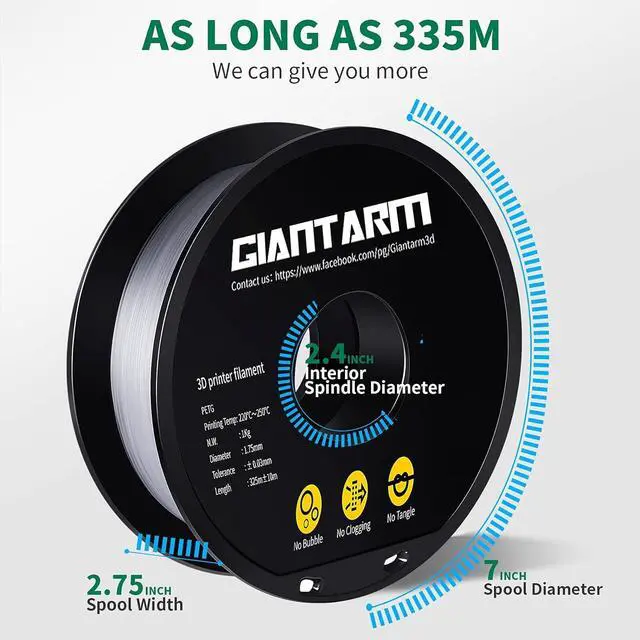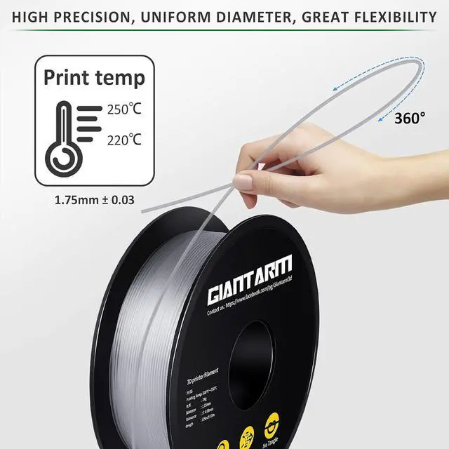 PETG Filament Specification: Petg filament 1.75 mm 1kg ( 2.2 lb) spool, dimensional accuracy of +/- 0.02 mm. recommended printing temperature: extrusion/nozzle