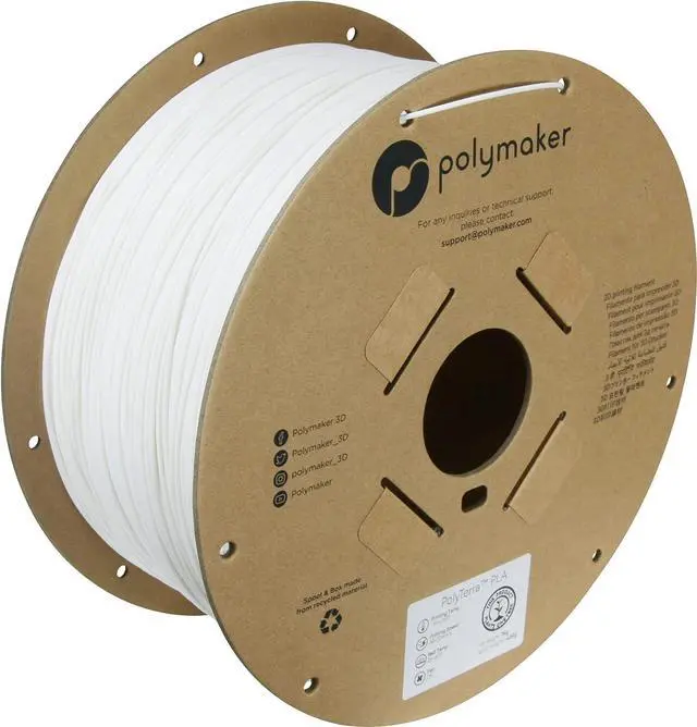Cardboard Spool: PolyTerra PLA filament comes in fully recycled cardboard packaging and is well-liked by hundreds of thousands of Polymaker customers.