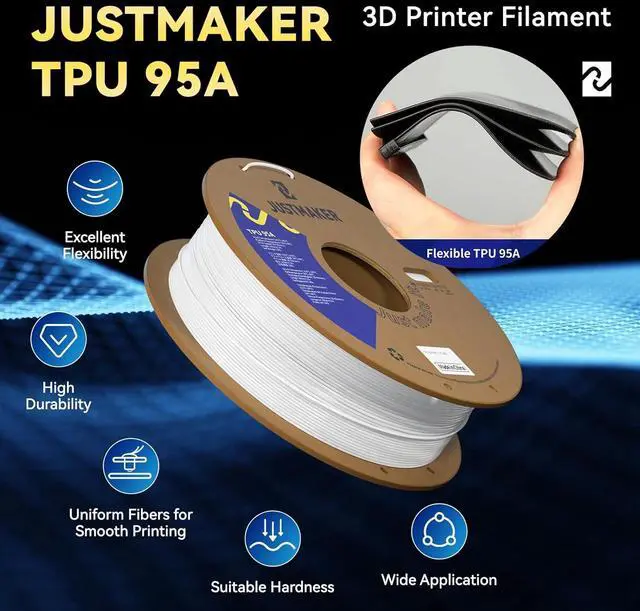 GOOD RESILIENCE - JUSTMAKER TPU 95A filament is made of multifunctional polyester fiber material with good resilience