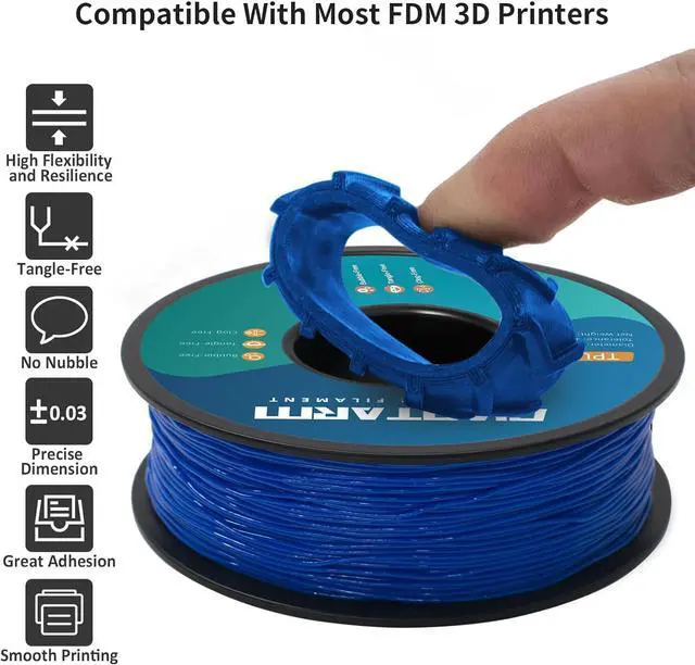 Wide Compatibility & Eco Free--- With over 9 years 3D filaments R & D experience, GIANTARM is capable of manufacturing all kinds of filaments in large scale with premium quality, which contribute to GIANTARM filament cost-effective and reliable for most common 3D printers, what' s more the tpu filament 1.75 mm can be used flexible in many areas.