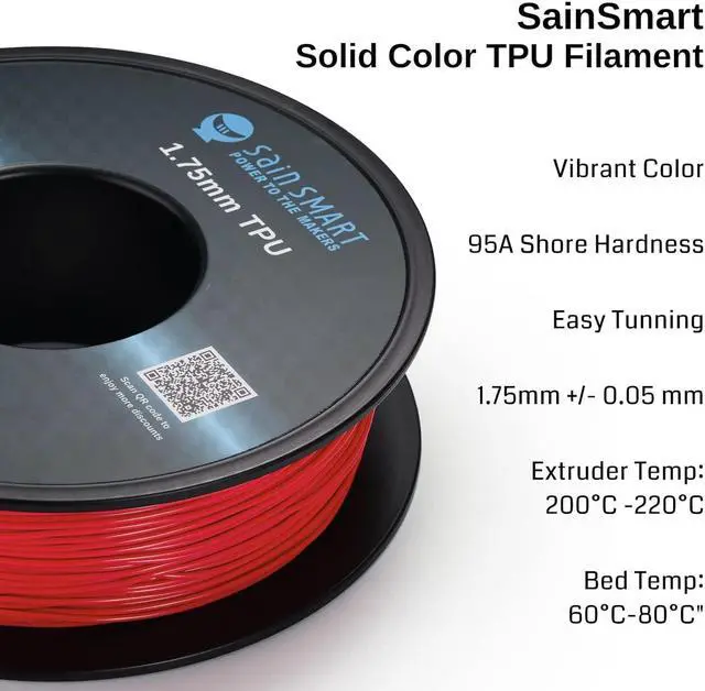 SainSmart TPU filament is renowned for its high quality and ease of use, offering you flexible and strong parts with consistency and smooth finish.