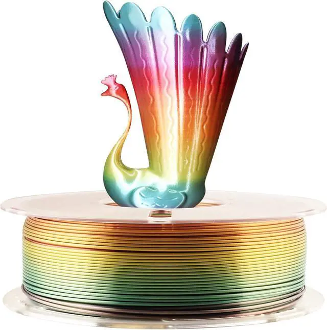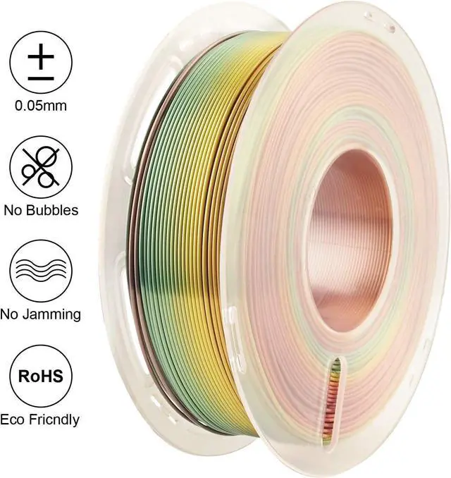 Fast Color Change Rainbow Multi Colors Silk PLA: Around Each 3 - 5 Meters to Change Color, Gradually Changing Color Much Much Faster than Normal Rainbow Silk PLA on Market, You Can Print Multi Beautiful Different Colors in One Spool Filament, Silk Glossy Smooth Appearance, Perfect for Arts, Crafts, DIY, Many Different 3D Print Projects