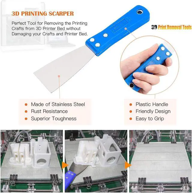 Stainless Steel Scrapers--The stainless steel scraper mainly used for removing models from 3D printers, thin enough to slide easily between the printer and the model without harming the substrate