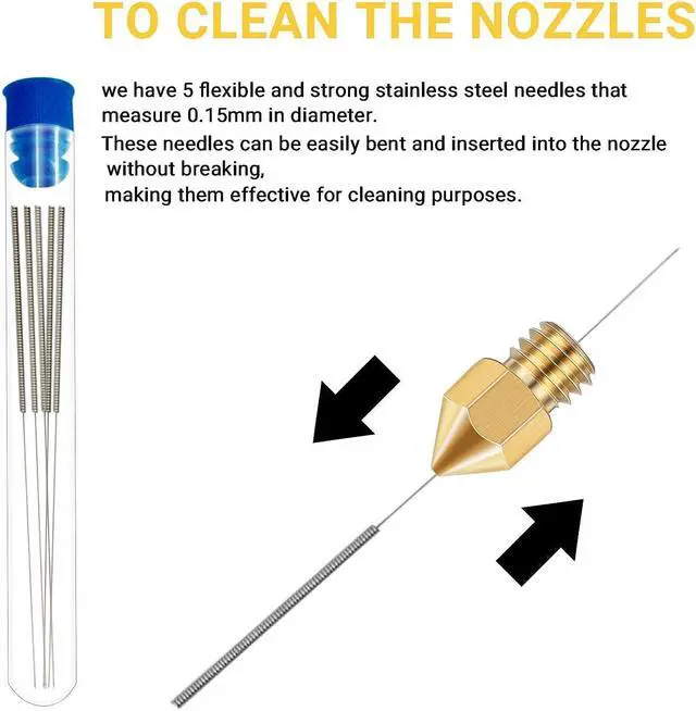 COMPLETE CLEANING SOLUTION - 3D printer nozzle cleaning kit comes with all the essential tools, including tweezers, wrenches, rigid needles, and brushes, for effective cleaning and maintenance of your printer' s extruder nozzles
